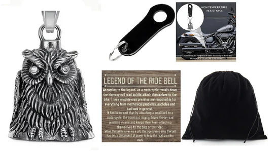 THE RIDE BELL ORIGINAL, Lucky Biker Charm Gift. Meant as a gift of Protection and Love For ALL Bikers! Wise Owl 3-D